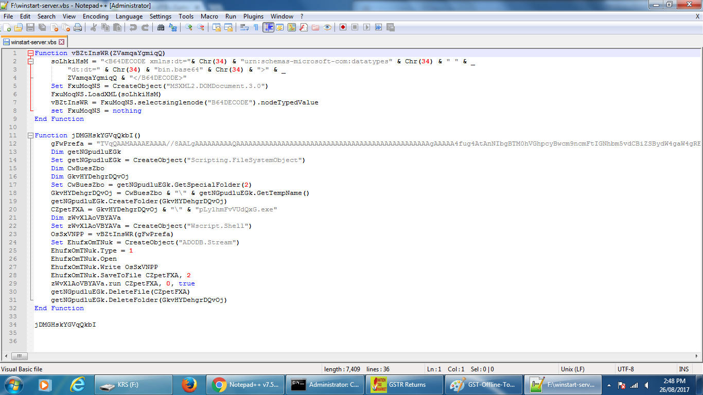 GSTN_offline_tool in India Goods and Services Tax Network (GSTN) Offline Utility tool before 1.2 executes winstart-server.vbs from the "C:\GST Offline Tool" directory, which has insecure permissions. This allows local users to gain privileges by replacing winstart-server.vbs with arbitrary VBScript code. For example, a local user could create VBScript code for a TCP reverse shell, and use that later for Remote Command Execution.